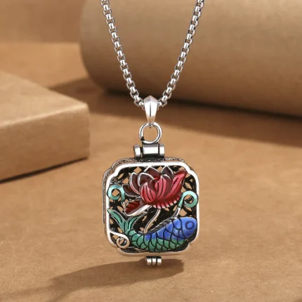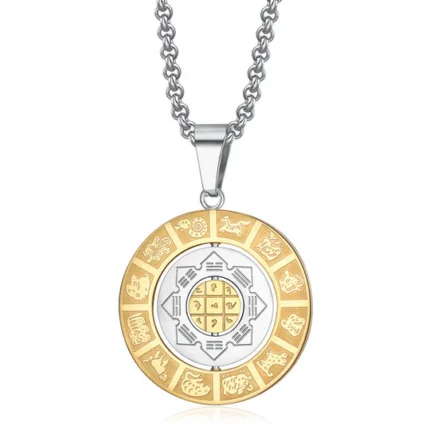 The Buddha Stones Chinese Zodiac Nine Palaces Eight Diagrams Bagua Amulet Harmony Necklace features a unique rotatable pendant design. Integrating traditional Chinese elements,