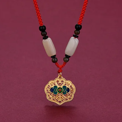 Indulge in the fusion of elegance and prosperity through our Buddha Stones Flower Love Heart Copper Wealth Necklace Pendant. Meticulously crafted, the copper pendant embodies equilibrium, fortune,