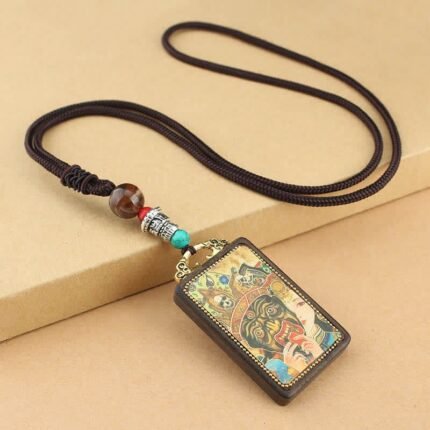 Specifications: Item Type: Necklace Pendant Length: 64cm Pendant Size: 3.8*0.9cm Material: Ebony Wood, Sandalwood, Agate, String Note: Due to the nature