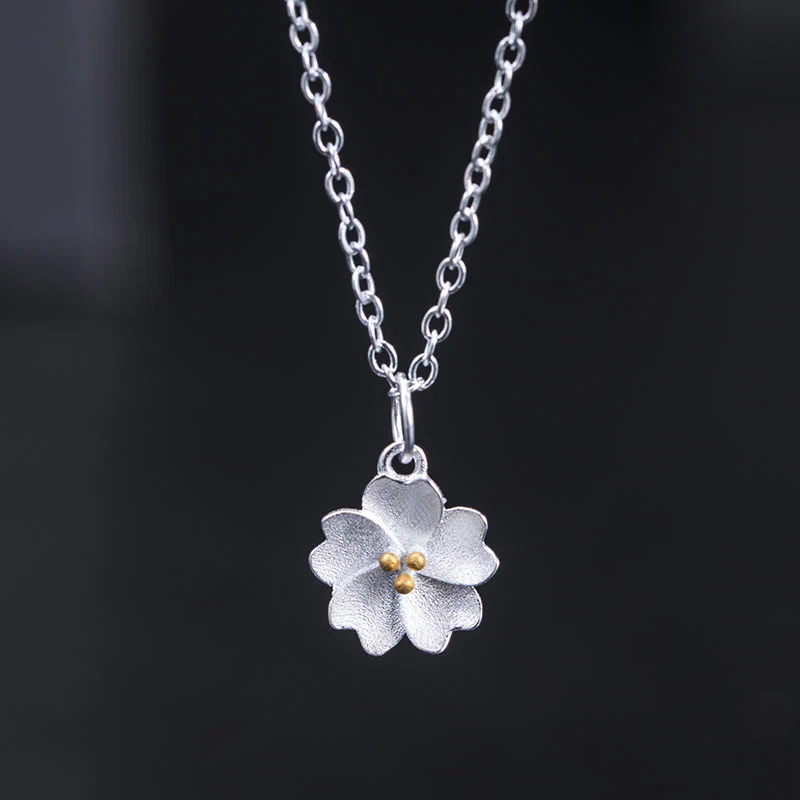 Buddha Stones 925 Sterling Silver Cherry Blossom Flower Blessing Necklace Pendant