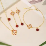 • Material: 925 Sterling Silver, Red Agate, PearlZircon; Earrings: 925 Sterling Silver, Red Agate, PearlZircon, 925 Sterling Silver Posts