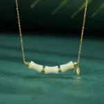 Buddha Stones 925 Sterling Silver Hetian Jade Bamboo Fu Character Prosperity Necklace Pendant Bracelet