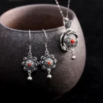 Elevate your style and spirit with our Sterling Silver Om Mani Padme Hum Lotus Necklace Pendant and Earrings Set, featuring Buddha Stones. This set combines the power of the sacred mantra with the calming properties of silver, symbolizing peace and wisdom. Adorn yourself with this meaningful accessory to invite harmony and spirituality into your daily life.