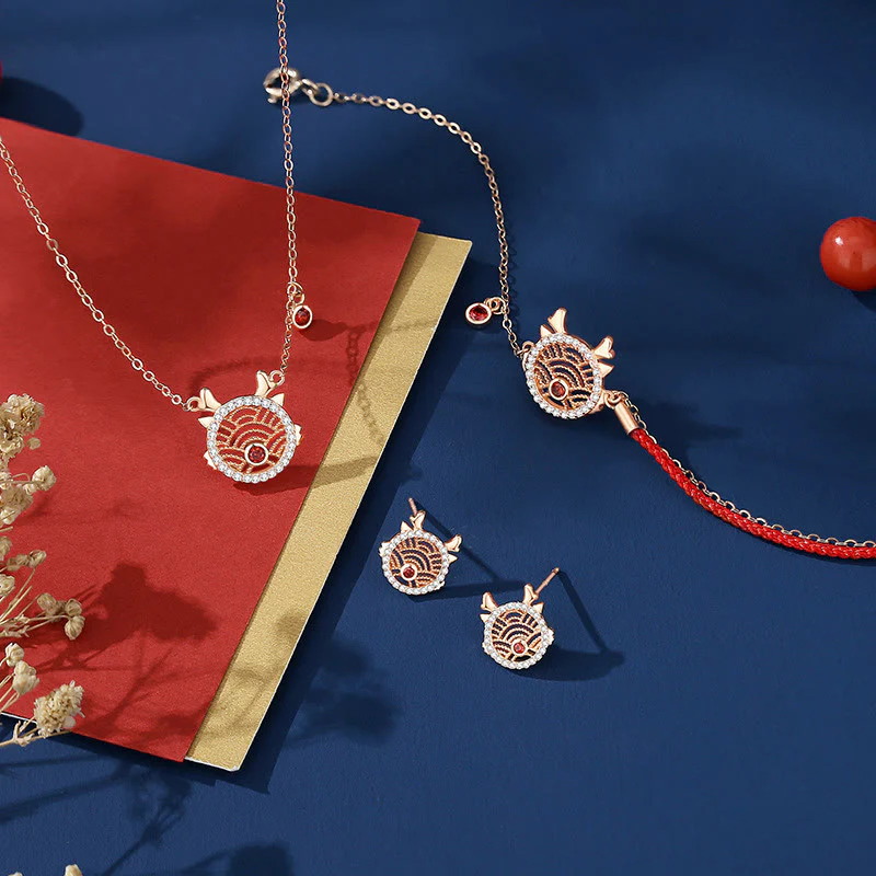 Bask in the symbolism of Buddha Stones' Year Of The Dragon collection, featuring auspicious clouds design. Crafted with precision, this collection offers protection and positivity. Whether you choose a bracelet, necklace, pendant, or earrings, the dragon's symbolism enhances your style and spiritual well-being. Embrace the harmonious blend of tradition and elegance with this jewelry set.