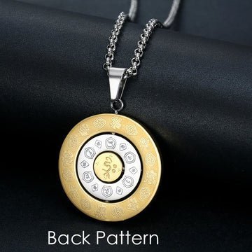 The Buddha Stones Chinese Zodiac Nine Palaces Eight Diagrams Bagua Amulet Harmony Necklace features a unique rotatable pendant design. Integrating traditional Chinese elements, this elegant necklace offers spiritual balance and is perfect for astrology enthusiasts and culture aficionados.