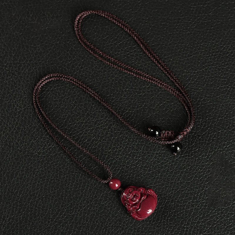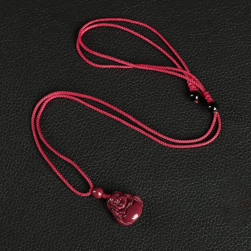 Buddha Stones Laughing Buddha Cinnabar Blessing Necklace Pendant Phone Hanging Decoration Key Chain