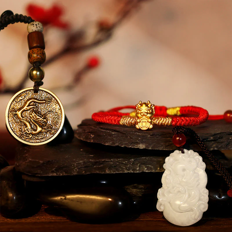 Experience the Buddha Stones Dragon 2024 Protection Bundle-1, an embodiment of fortune and protection. Crafted with precision, this bundle celebrates the Year of the Dragon in 2024, symbolizing strength and luck. It combines spirituality and elegance, enhancing your connection to positive energy and ancient traditions. Elevate your life with this meaningful set, radiating good luck and protection.