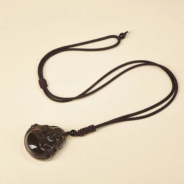 Pendant Size: Black Obsidian Buddha 36.7*33.5*14mm, Ice Obsidian Buddha 36.8*33.5*13.5mm