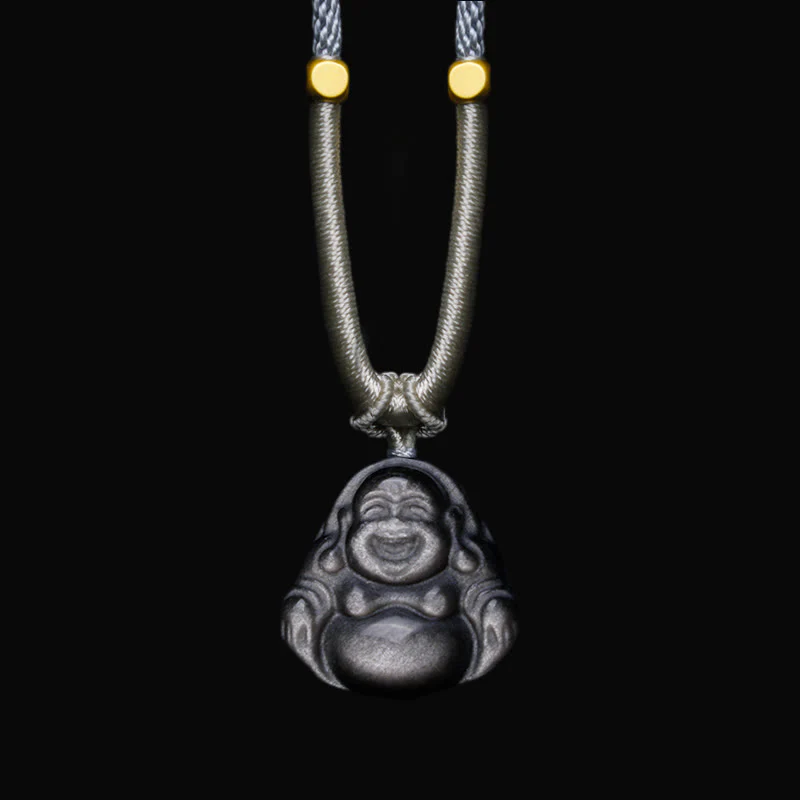 Be the first to review “Buddha Stones Natural Silver Sheen Obsidian Laughing Buddha Protection Necklace Pendant”
