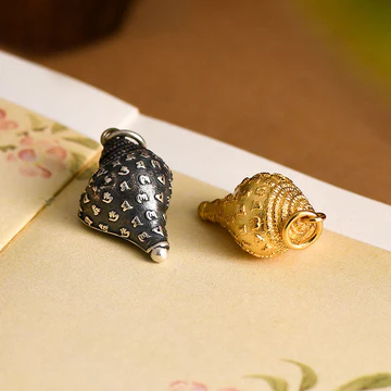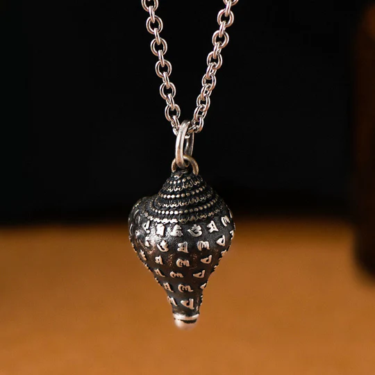 Tibet Six True Words pendant showcases the revered mantra on a shankha conch design. Crafted from high-quality sterling silver, this pendant symbolizes protection and spiritual guidance. The six true words mantra enhances its sacred significance, offering a source of peace and spiritual strength. This unique piece serves as a powerful reminder of protection and divine blessings.