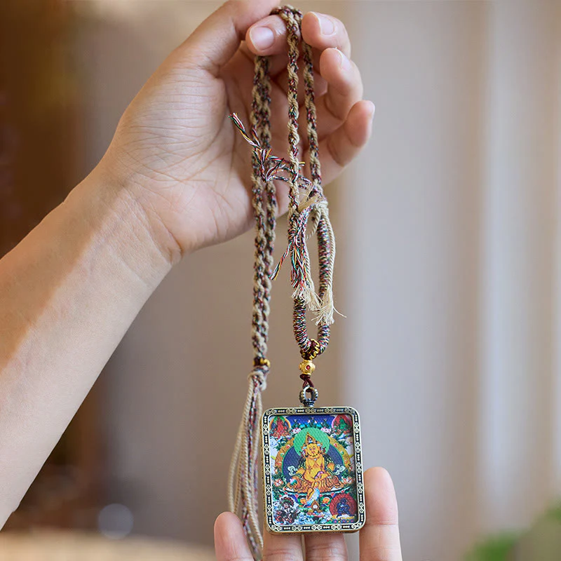 Buddha Stones Tibet Five Directions Gods of Wealth Hand-Painted Thangka Buddha Serenity Necklace Pendant