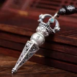 This exquisite necklace pendant, adorned with the sacred Tibetan "Om Mani Padme Hum" mantra, features a unique rotatable Dorje Vajra design, symbolizing wisdom and strength. Ideal for meditation practitioners or those seeking spiritual grounding, it serves as a stylish reminder of mindfulness and inner tranquility in everyday life.