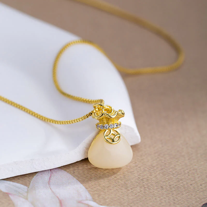 Be the first to review “Buddha Stones White Jade Copper Coin Luck Money Bag Necklace Pendant” Cancel reply