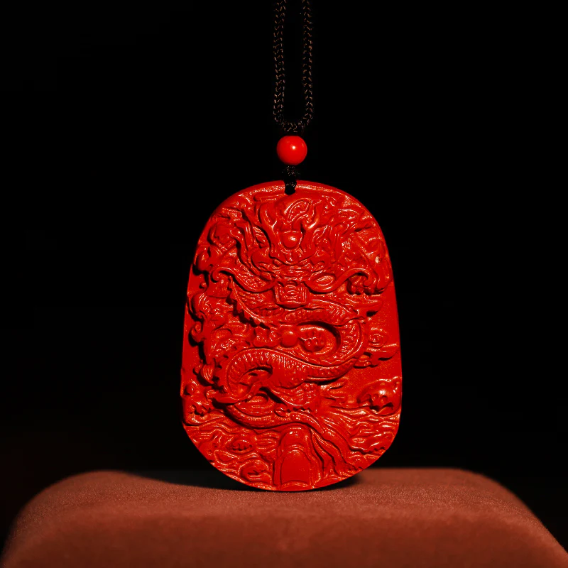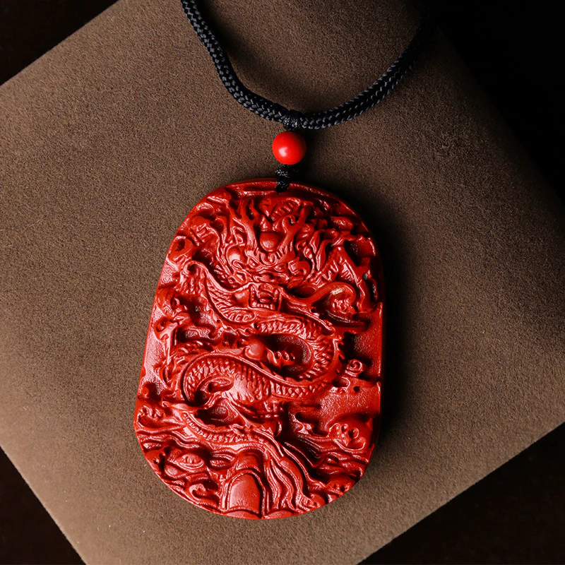Buddha Stones Year of the Dragon Natural Cinnabar Luck Protection Necklace Pendant
