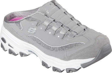 A classic sporty look gets even easier to love with the SKECHERS D’Lites – Resilient shoe. Nubuck leather and fabric upper in a low backed slip on sporty casual sneaker clog with stitching and overlay accents. Air Cooled Memory Foam insole.