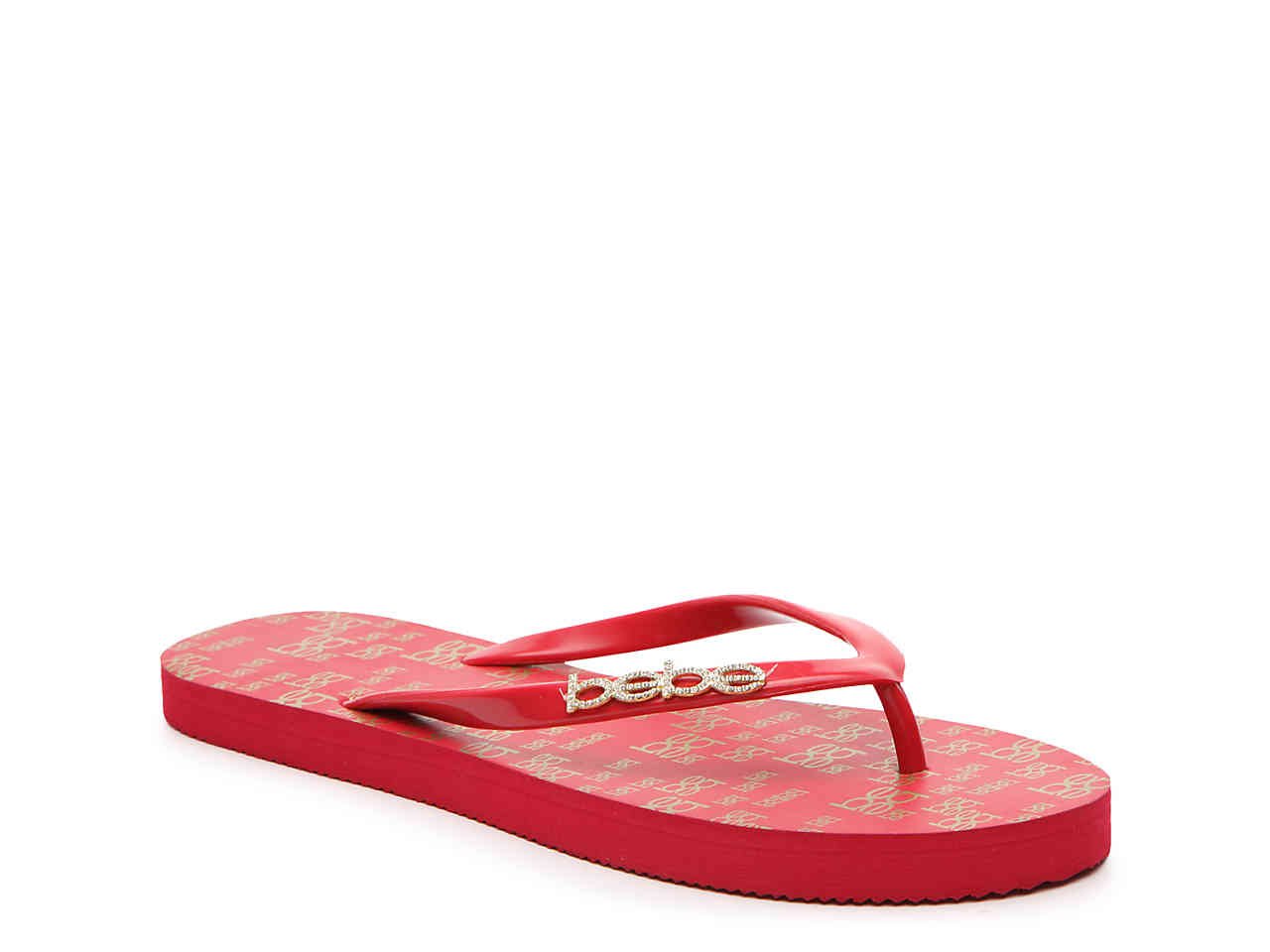 Pool days just got alot more chic with the Evvie flip flop from bebe. A rhinestone embellished logo detail on the thong strap adds a touch of glam to this lightweight sandal.