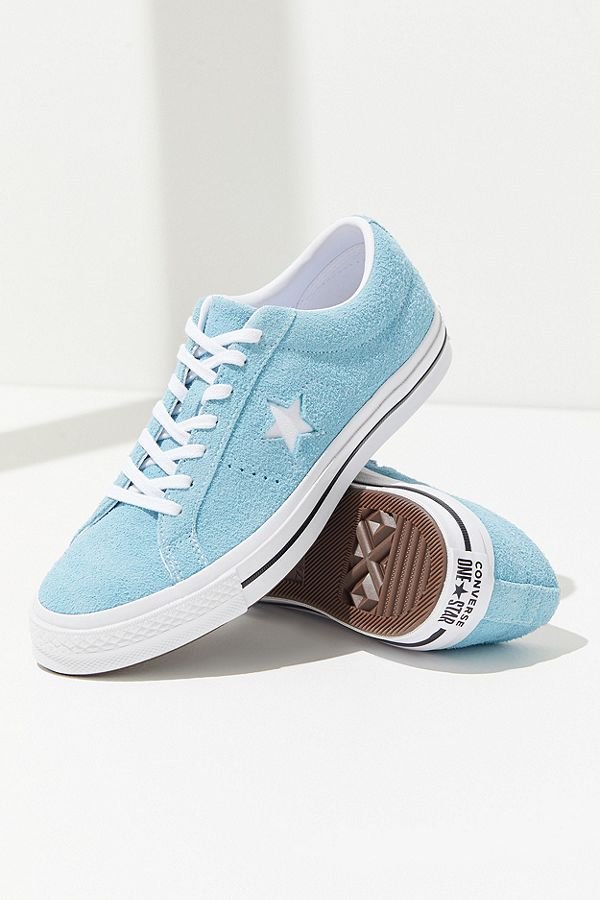Suede iteration of the iconic One Star sneaker from Converse. Low-top in a fuzzy textured suede with perforated detailing + cutout star logo at sides. OrthoLite® midsole provides cushioning over a grippy, rubber sole.