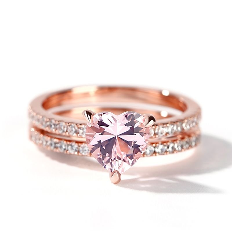 6 reviews for Pink Heart Cut Synthetic Morganite Sterling Silver Ring Set