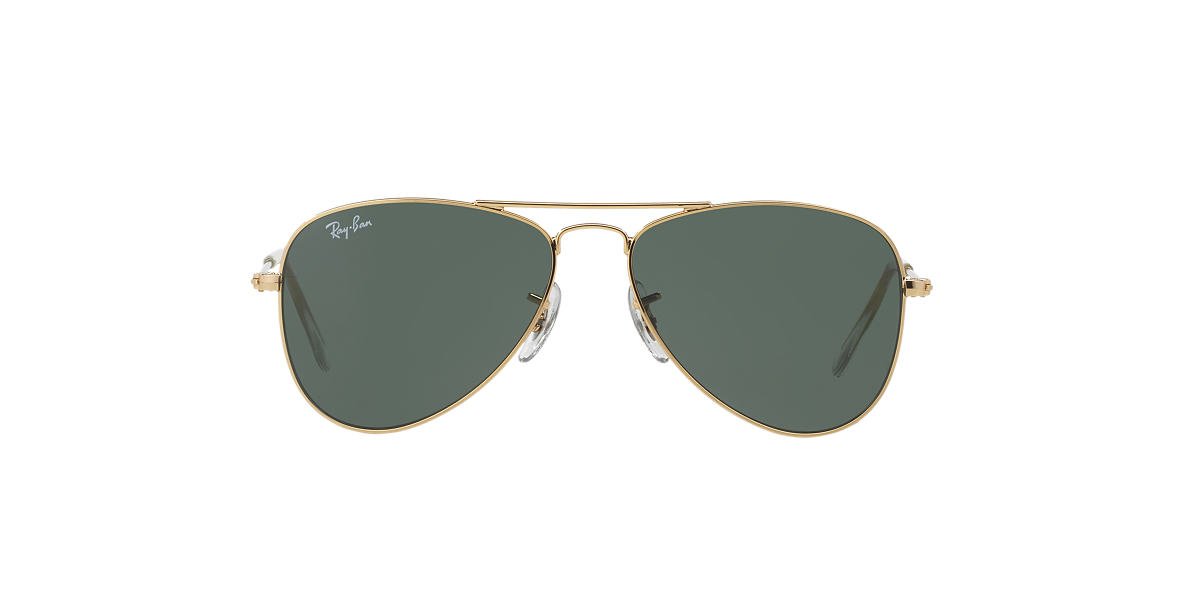Adults aren't the only ones in need of stylish, protective eyewear. Ray-Ban Aviator Junior sunglasses are the Aviator of choice for future pilots and daredevils. This junior version of the iconic Ray-Ban Aviator offers the same pilot look and 100% UV protection. The gold frame is paired with green lenses.
