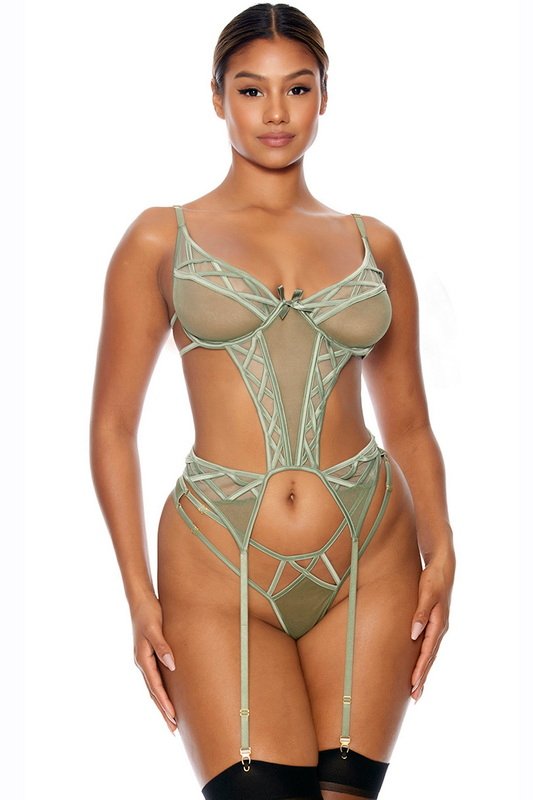 Sage Cutout Sheer Mesh Bustier Set