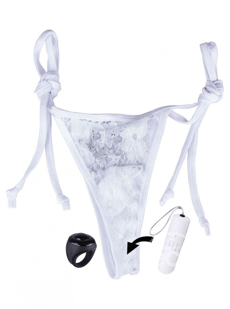 Put the power of pleasure into shoppers' hands with My Secret Vibrating Panty Set, a super-powered vibrating bullet that fits discreetly into a side-tie lace panty to keep it perfectly in place. Operated by a remote control disguised as a finger ring, the My Secret Vibrating Panty Set works from up to 50 feet away makes it fun and easy for couples to play in public. When worn in the panty's pocket, the powerful Bullet sits comfortably against the body and buzzes with 10 different vibration functions designed to tease, please and make her plead for more. Discreet enough to wear under clothing and out on the town and sexy enough to match with any lingerie, the My Secret Vibrating Panty Set is a sexy solution for spicing up any sex life! – Latex and phthalate-free – Wireless – Water Resistant – Requires AG13 Battery – 80+ Minutes of battery life